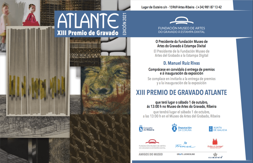 He sido seleccionada para el premio Atlante de grabado XIII por la obra Cosmic Ritual. Participo en la exposición que se celebra del 1 de octubre al 1 de diciembre de 2022 en el Museo del Grabado de Artes (Ribeira, Galicia). Me siento agradecida y encantada de participar en esta muestra junto a otros artistas y compañeros grabadores.